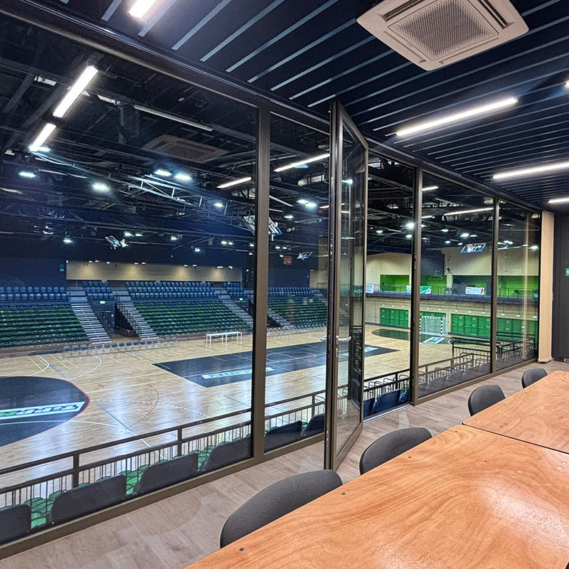 A VIP lelátónk igazi gyöngyszeme létesítményünknek, ahol a sport és az üzleti találkozók tökéletes összhangja valósul meg. A két, egyenként 30 m2 elszeparált helyiségünkben egy-egy modern, nagy konferenciaasztal található 10-10 kényelmes székkel, ideális környezetet teremtve üzleti megbeszélésekhez vagy baráti összejövetelekhez. Az egyedi kialakítású elhúzható üvegfalaink lehetővé teszik, hogy a VIP vendégek zavartalanul folytathassák megbeszéléseiket bezárt ajtók mögött, miközben szem előtt tartják a pályán zajló eseményeket. Amennyiben közelebb kívánnak kerülni a csarnok pezsgő atmoszférájához, az üvegfalak elhúzásával részesei lehetnek a látványos sporteseményeknek is. A VIP élményt tovább emeli a Pepper House Catering által biztosított prémium minőségű catering szolgáltatás, melyet előzetes kérésre bekészítünk.
